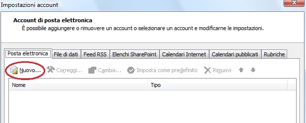 Nella nuova finestra cliccare sul tab "Posta Elettronica" e di seguito la voce "Nuovo".