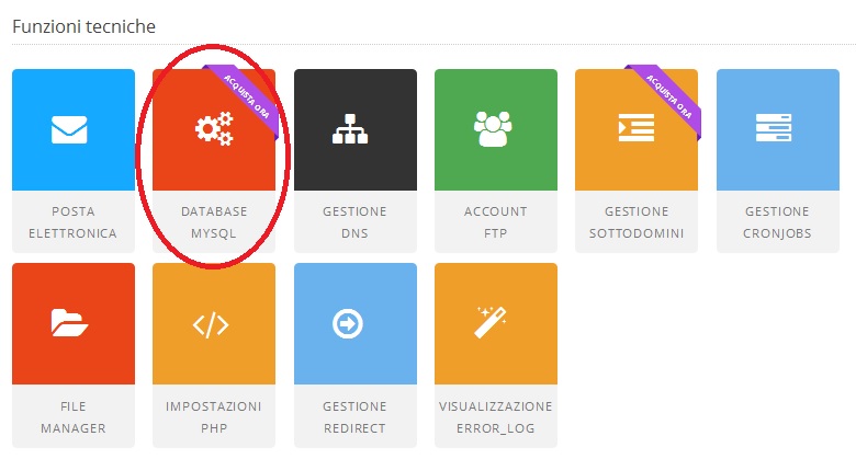 E’ possibile creare i database dalla sezione apposita del WebPanel. Inserendo le proprie credenziali e accedendo al servizio prescelto si seleziona il widget “Database MySQL”.