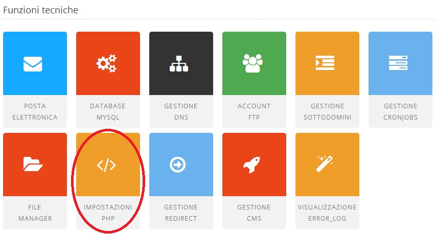 In Gestione Servizio del WebPanel è presente il widget "impostazioni PHP" mediante il quale è possibile avere accesso ad una serie di parametri tecnici riguardanti il servizio.