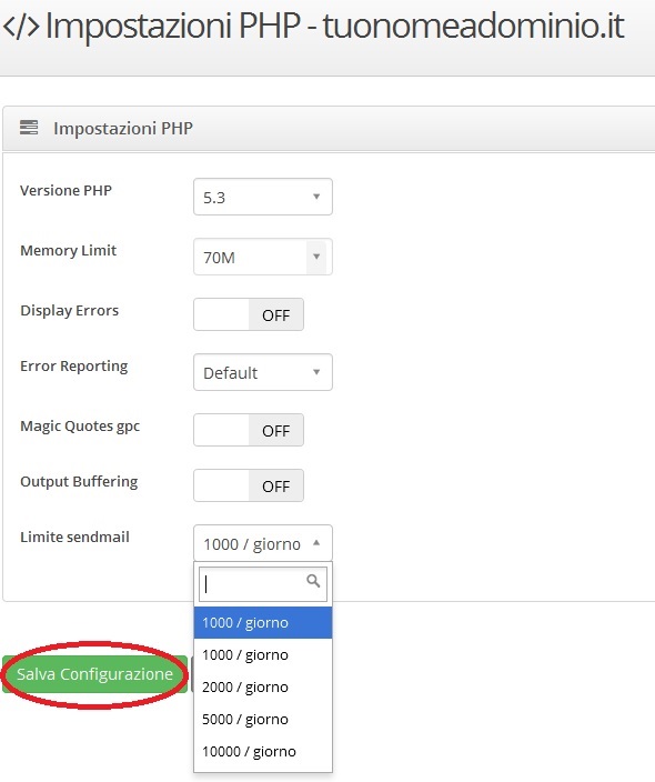 - definire il numero di email inviabili dal sito attraverso il servizio sendmail (1.000, 2.000, 5.000 o 10.000 al giorno).